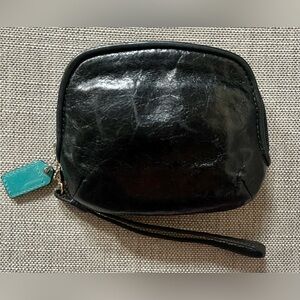 COACH Poppy Black Leather Push Lock Oval Wristlet Zip Pouch Wallet