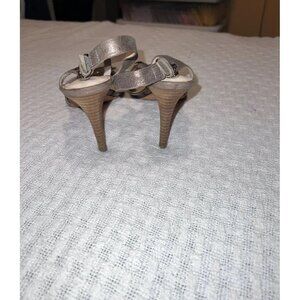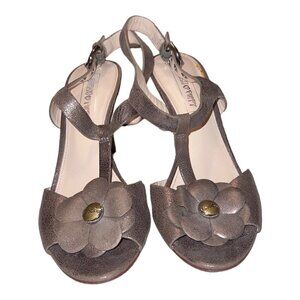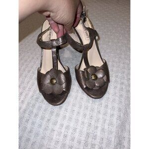 COACH Poppy Horizon Bronze Metallic Leather Flower Ankle Heeled Sandals