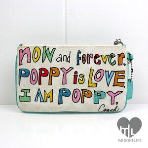 Joyful fashion and very collectable! The Poppy Collection saved the Coach brand during the "Great Recession" of the 2000s. This vibrant and fun pouch piles on the playful details.