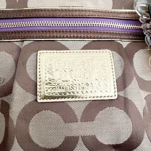 COACH Poppy Tote Shoulder Bag Signature CC Jacquard Purple Zipper