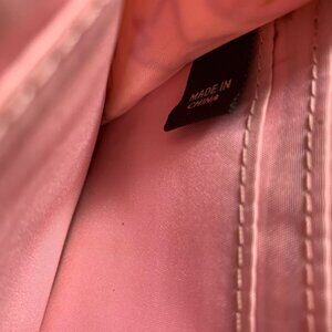 Signs of wear on the bottom corners. Has dirt marks inside and out. Width: 7.5", Height: 4.5", Depth: 0.5", Strap drop: 6".