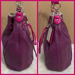 COACH Purple Leather DAISY Spectator Drawstring Bucket Hobo w/Xbody Strap F25662