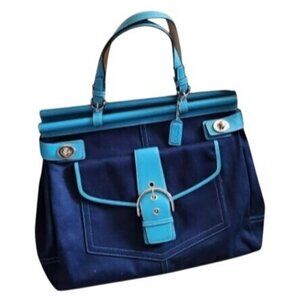 COACH RARE 2004 Limited Edition Soho Dowel Top Leather Satchel Light Blue & blue