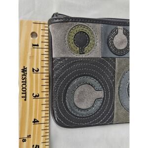 COACH RARE WOMENS BLACK OLIVE PATCHWORK LEATHER WRISTLET PURSE