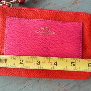 COACH RED/PINK PEBBLE LEATHER WRISTLET WALLET