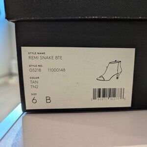 COACH REMI Snakeskin Snakebite Open Toe Ankle Leather Bootie Boots Tan Black