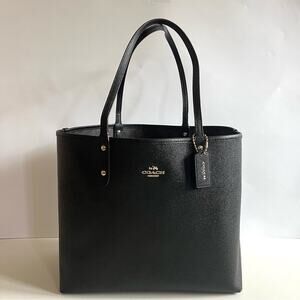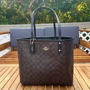 COACH REVERSIBLE Leather City Tote in Black and Signature Brown Logo