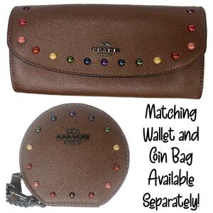 COACH ROUND COIN CASE RAINBOW RIVETS DARK SADDLE PRIDE ANTIQUE NICKEL F31574