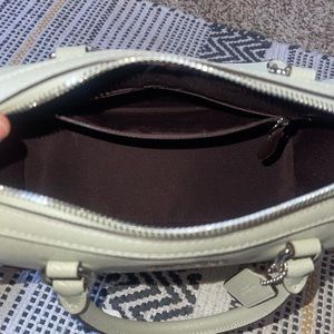 COACH ROWAN SATCHEL IN MINT. NEVER BEEN CARRIED. NO FLAWS. CHOCOLATE INTERIOR. MESSAGE BEFORE PURCHASING.