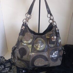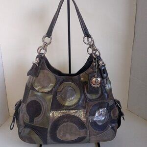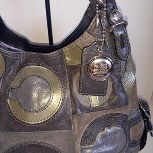 COACH *Rare* Maggie Mia Inlaid C Hobo Bag #15770 Gray Brown Silver Leather