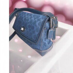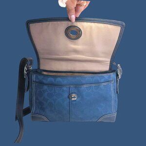 COACH Rare Signature Hampton Flap Crossbody or Shoulder bag in blue