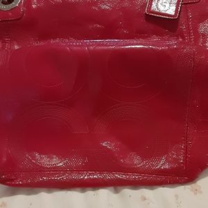Large, Patent Leather, Coach Tote, Great condition, Matching hangtag. A few small mark's on the inside lining, see photos, 1 light mark on bottom, virtually hard to see, last photo.