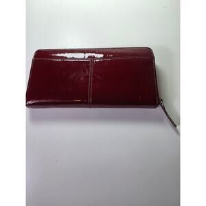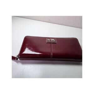 COACH Red Crimson Patent Leather Zip 4 Compartment Wristlet Wallet