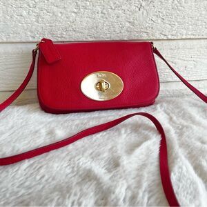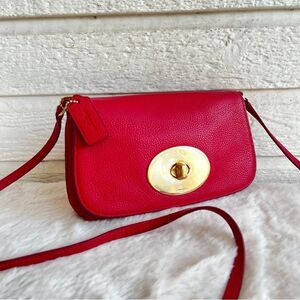 COACH Red Leather Flap Turnlock Crossbody Handbag 52896