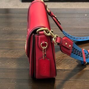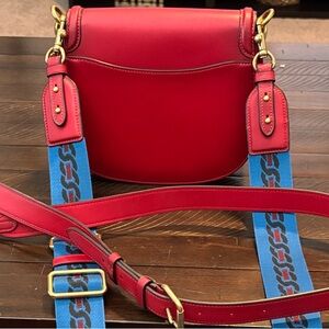COACH Beat Saddle Bag in Candy Apple Red Glove Tanned Leather C3738 with additional leather strap