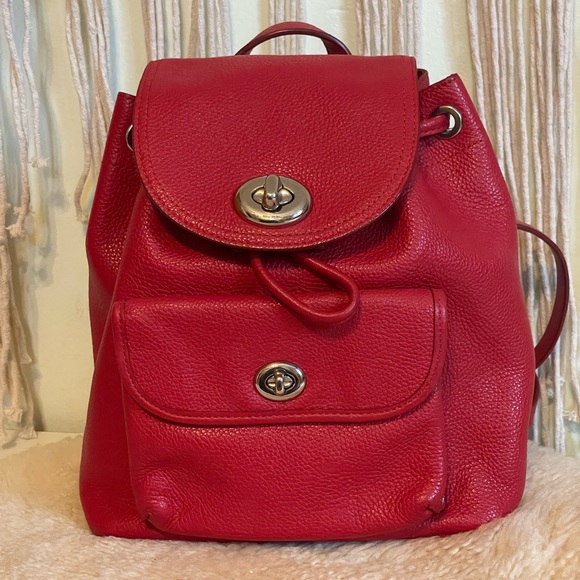 Red Coach mini backpack made of soft genuine leather. Condition - very good, lightly worn. Approximate dimensions: 9in or 22.9cm height
