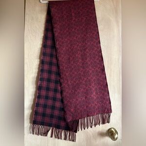 COACH Reversible Signature Plaid Wool Scarf Rich Burgundy Black OS