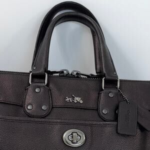 COACH Rhyder Leather Satchel Tote Bag Metallic Two-Tone Bronze Carryall 33739