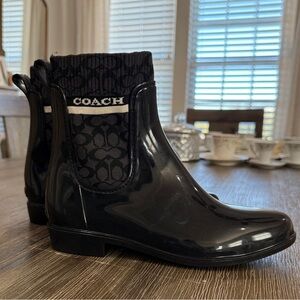 COACH Rivington Rain Booties. Sz 7. NWOT. They are a modern, lightweight take on classic rain gear, designed with a sleek Chelsea boot silhouette and a glossy finish.