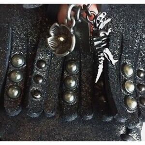 Description: Pearly studs and burnished grommets give understated style to a kiltie-fringe loafer crafted from supple leather. The plush, genuine shearling lining adds a Glitter Anthracite (Black) suede upper. Slip-on. Leather lining. Shearling footbed. Crepe outsole. Flat heel.