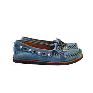 Pearly cabochons, metal rivets and Western-inspired fringe update our Roccasin slip on. The cushiony, smooth suede flat has a soft shearling insole and a leather bow with dangling Coach charms: a mini Rexy, a Tea Rose motif, and a signature hangtag.