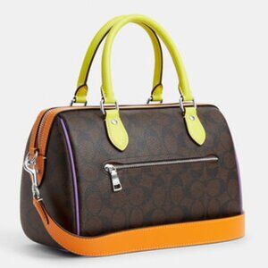 COACH Rowan Satchel In Colorblock Signature Canvas Silver/Brown/Iris Multi