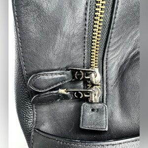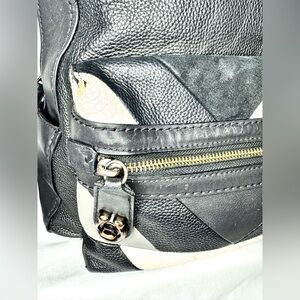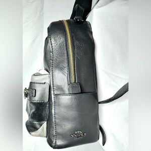 Authentic COACH 38674 Unisex Rucksack Bag Pack Shoulder Logo Peppled Leather Black. Year 2018. Stylish black and white leather backpack with front zipper pocket. Perfect for everyday use. 12”x10” Pre-loved.
