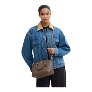 COACH SADIE SATCHEL BAG CROSSGRAIN LEATHER IN DARK STONE ADJUST. CROSSBODY NEW