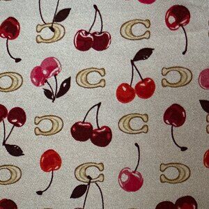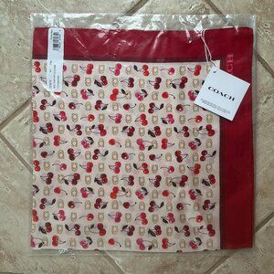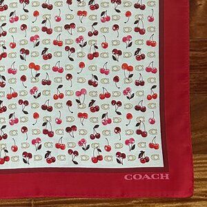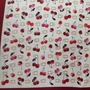 COACH SCULPTED C CHERRIES PRINT SILK BANDANA SCARF:NWT CDG76 CHALK/RED