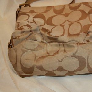 COACH SIGNATURE 15067 KHAKI TAN GOLD SHOULDER BAG PURSE F15067