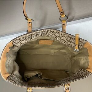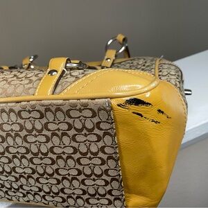 COACH SIGNATURE C HANDBAG Jacquard Tan Patent Leather