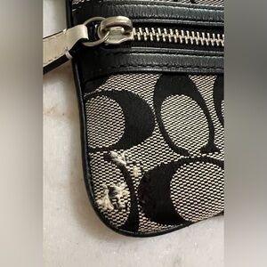 COACH SIGNATURE C LOGO CANVAS BLACK/CREAM SKINNY 2 ZIP POCKET WRISTLET PURSE 👀