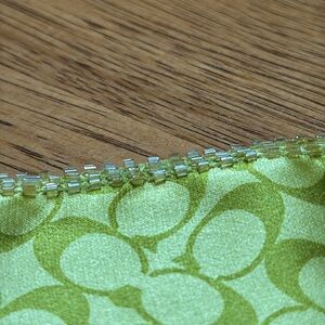 COACH SIGNATURE EXTRA LONG SILK SKINNY SCARF WITH IRIDESCENT BEAD TRIM DETAIL