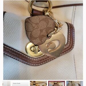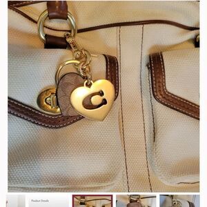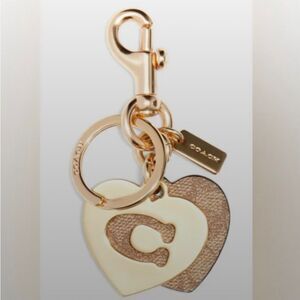 ️COACH SIGNATURE HEARTS KEYCHAIN bag charm khaki metal gold siganture c