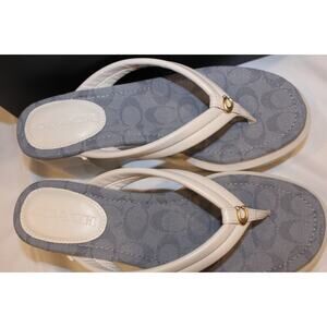 COACH SIGNATURE JACQUARD FRANKI THONG FLIP FLOP SANDALS NIB CHALK
