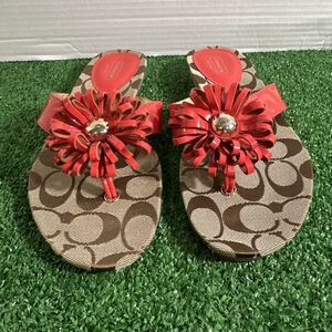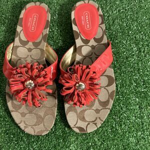 COACH SKYE PATENT SIGNAURE C THONG MELON KHAKI THONG SLIPPER 7.5/ M NIB