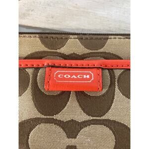COACH SMALL SIGNATURE PRINT CANVAS, ORANGE TRIM WRISTLET.