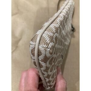 COACH SMALL TAN, IVORY SIGNATURE PRINT CANVAS WRISTLET