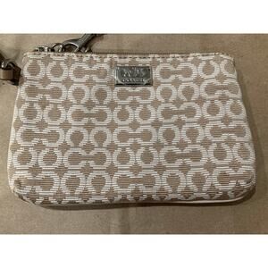 COACH SMALL TAN, IVORY SIGNATURE PRINT CANVAS WRISTLET