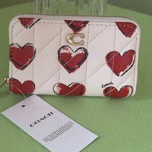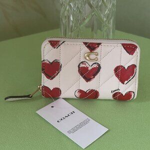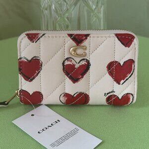 COACH SMALL ZIP-AROUND CARD CASE W/QUILTING & HEART PRINT:NWT CBR71