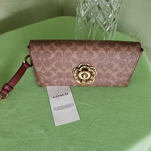 COACH SUNGLASS CASE BAG CHARM SIGNATURE W/TEA ROSE TURNLOCK:NWT 89408
