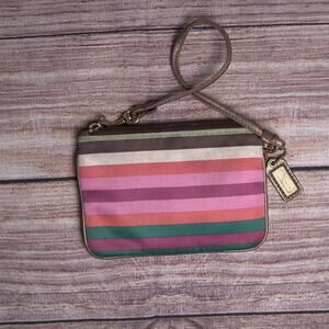 COACH Satin Striped Wristlet w/ Rose Gold Trim and Charm Gpold Hardware Y2K