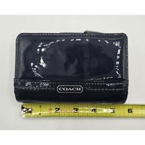 COACH Shiny Patent Leather Snap Card Case Wallet Navy Blue