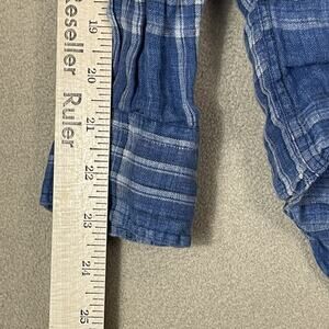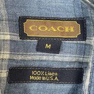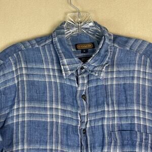 COACH Shirt Mens M Blue Plaid Long Sleeve Linen Button Up Relaxed Fit Pocket
