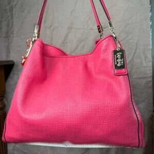 COACH Shoulder Bag Madison Pheobe Hot Pink Embossed Leather Handles 2010s 30089