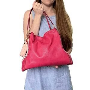 COACH Shoulder Bag: Madison Pheobe Hot Pink Embossed Leather 30089. Made in 2014 (per label). Double handle satchel.