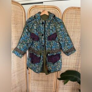 Beautiful rare coat that gives you options based on the mood for the day! This coat is reversible with a hunter green look on one side and a silk floral design on the other!