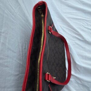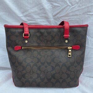 COACH Signature BROWN 1941 RED Canvas Leather CITY TOTE SHOULDER BAG