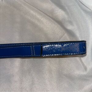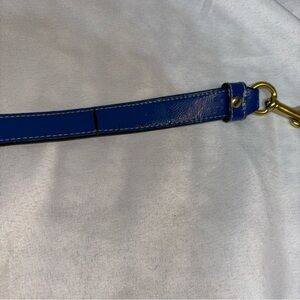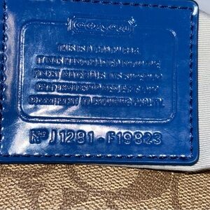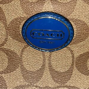 Coated signature canvas in tan color w/blue trim accent. This is a large roomy bag it has an attached strap that converts from long to carry as crossbody or double it up for a shoulder bag. This bag made its debut in the early 2000’s around 2012.