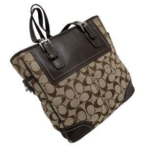COACH Signature C Jacquard Canvas Leather Tote Bag